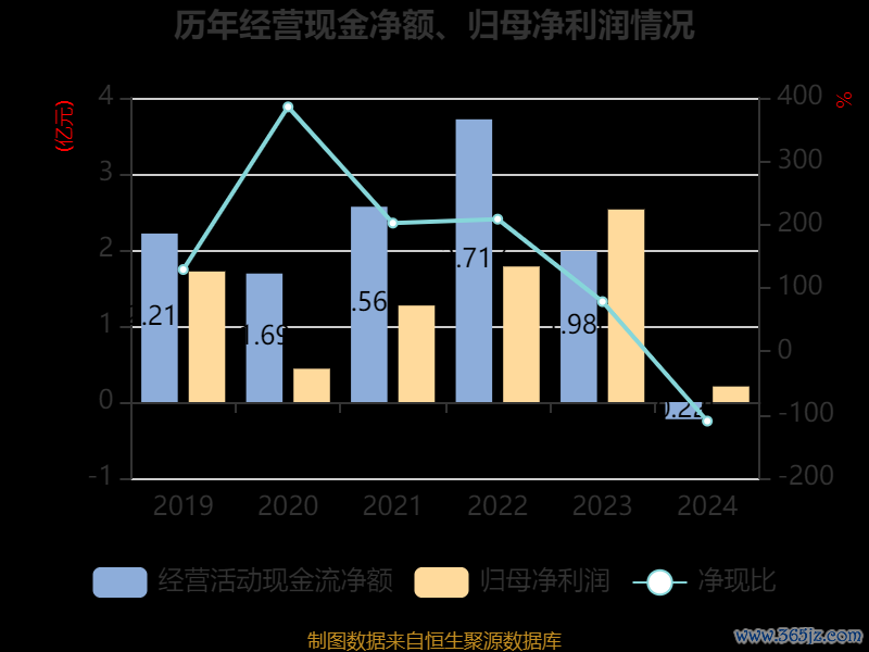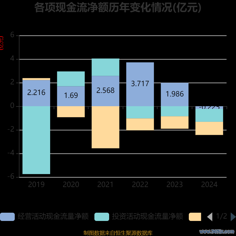 截至2024年,公司经营活动现金流净额为-2254.98万元,同比减少2.21亿元;筹资活动现金流净额-1.12亿元,同比减少606.42万元;投资活动现金流净额-1.1亿元,上年同期为-8553.06万元。