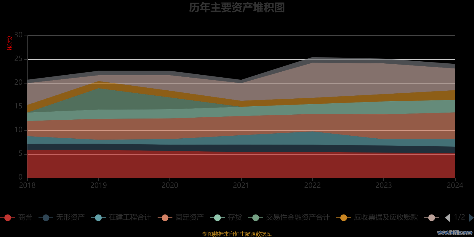 资产重大变化方面,截至2024年末,公司货币资金较上年末减少29.33%,占公司总资产比重下降6.71个百分点;固定资产较上年末增加7.43%,占公司总资产比重上升2.6个百分点;应收票据及应收账款较上年末增加31.61%,占公司总资产比重上升2.34个百分点;在建工程合计较上年末增加19.65%,占公司总资产比重上升1.32个百分点。